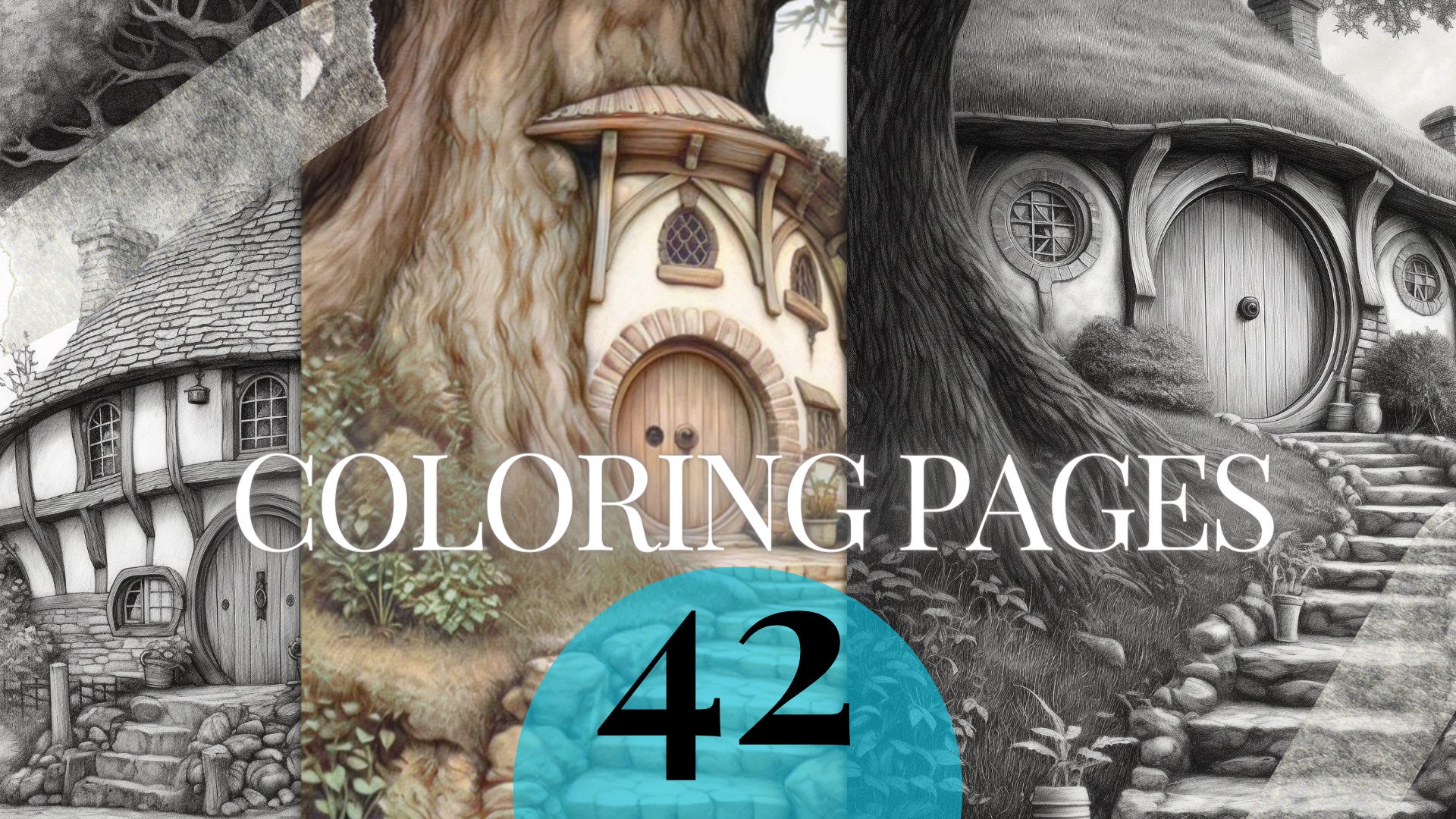 42 Grayscale Coloring Pages Fantasy Forest Homes And Houses Etsy Osterreich